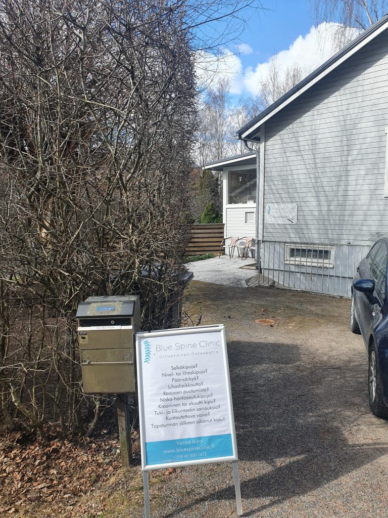 Toimitila sijaitsee osoitteessa Tanotorventie 10 a. Rakennus on vaalea omakotitalo ja yrityksen sisäänkäynti on talon Tanotorventien puoleisella sivulla. Teiltä katsottuna parkkipaikan vasemmasta reunasta laskeutuvat portaat alas valkoiselle ovelle, joka on vastaanoton sisäänkäynti. Ovi on auki noin 5 minuuttia ennen sovittua aikaa. Tiloissa ei ole odotushuonetta, joten tulethan täsmällisesti omalla ajallasi.